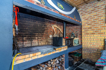 Entertainment is at the heart of this home, with a dedicated braai room featuring a large indoor braai, bar area, and even a built-in jacuzzi for year-round relaxation.
