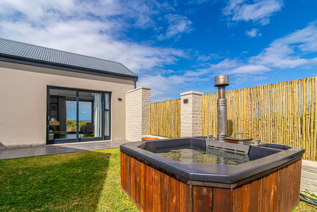 - Private Courtyard: All three bedrooms open directly onto a sheltered, wind-protected courtyard – the perfect gathering spot with a massive braai area and a soothing wood-fired hot tub, ideal for starlit evenings.