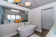 Our spacious villa features three beautifully appointed bedrooms, each with its own en-suite bathroom for ultimate privacy and comfort. The main bedroom boasts a luxurious skylight shower and an elegant oval bath, allowing you to unwind while enjoying the spectacular ocean view.