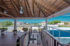 The house offers access to a swimming pool & outdoor braai area on the ground floor. On the top floor the balcony offers a stunning sea view, with outdoor braai, pool table and dart board.